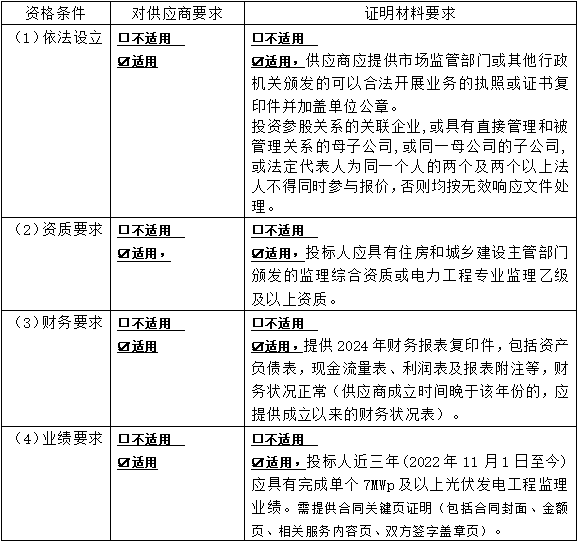 3 供應(yīng)商資格要求