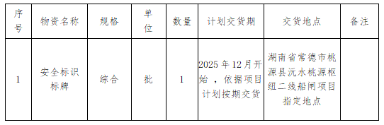 湖南省航務工程有限公司沅水桃源樞紐二線船閘建設工程安全標識標牌采購誠邀各單位前來投標。