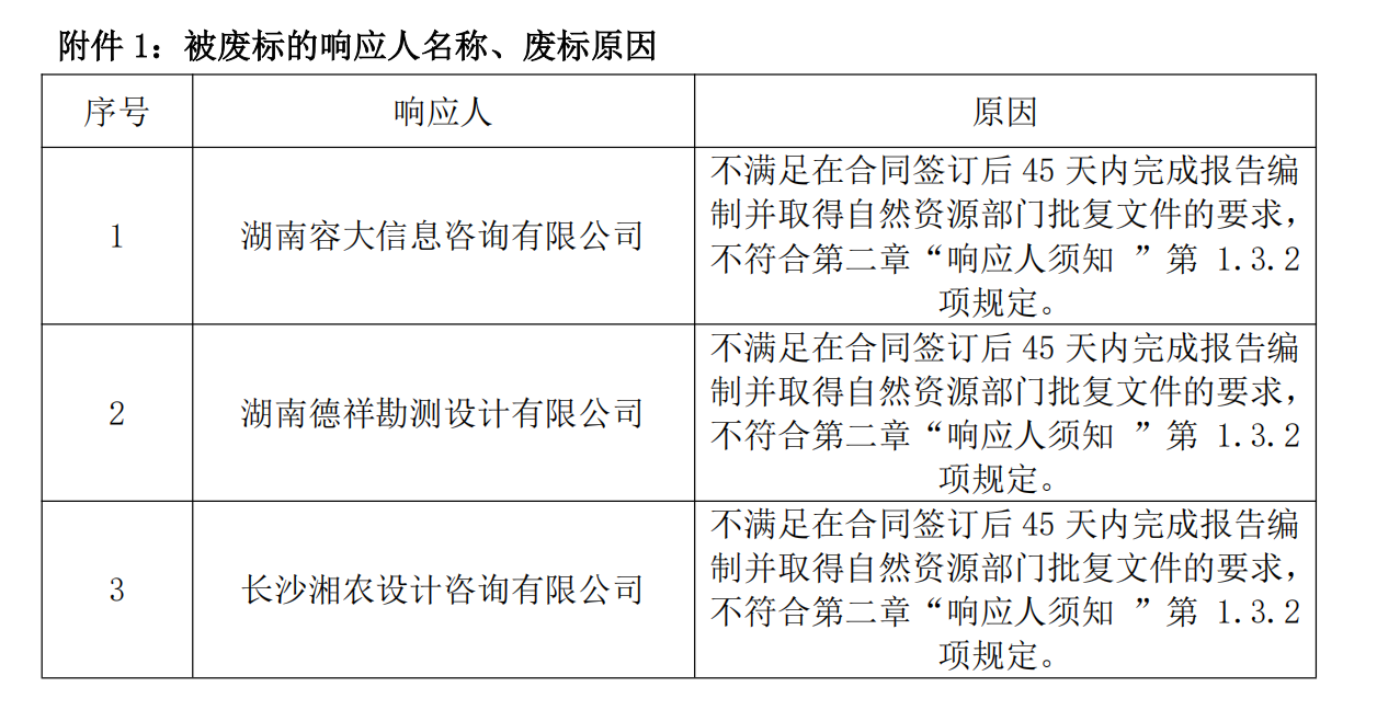 詢價(jià)人湖南省水運(yùn)建設(shè)投資集團(tuán)有限公司對(duì)資水益陽(yáng)至蘆林潭二級(jí)航道建設(shè)工程(赫山區(qū)段)耕作層土壤剝離再利用方案編制及報(bào)批技術(shù)服務(wù)(第二次)(YLHD-XJ20)進(jìn)行公開詢價(jià),經(jīng)評(píng)標(biāo)委員會(huì)評(píng)審,此次詢價(jià)共三家響應(yīng)單位,其中:湖南容大信息咨詢有限公司、湖南德祥勘測(cè)設(shè)計(jì)有限公司、長(zhǎng)沙湘農(nóng)設(shè)計(jì)咨詢有限公司詢價(jià)文件技術(shù)服務(wù)期均不滿足在合同簽訂后45天內(nèi)完成報(bào)告編制并取得自然資源部門批復(fù)文件的要求,不符合第二章"響應(yīng)人須知"第1.3.2項(xiàng)規(guī)定。