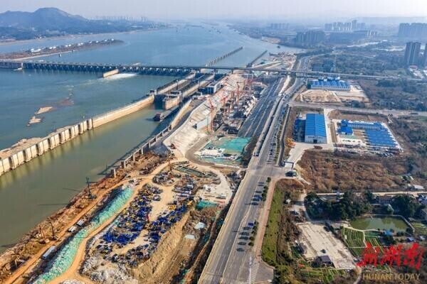 沅水洪江至辰溪航道建設(shè)工程,總概算18.31億元,整治沅水洪江市(舞水河口)至辰溪縣(大洑潭樞紐下游750m)航道180公里,按1000噸級(jí)改建洪江樞紐船閘,該船閘工程創(chuàng)新性將原上閘首及一閘室改建為新船閘的通航明渠,是國內(nèi)首例重力壩式船閘開鑿?fù)ê剿?,也是湖南省首個(gè)水頭達(dá)到27米的高水頭單級(jí)船閘。2025年,完成投資3.124億元,占年度計(jì)劃(3億元)的104.13%,洪江船閘主體工程提前一個(gè)月完成交工驗(yàn)收,航道整治工程全面收官,6處航道站房正同步開工建設(shè)。憑借突破性技術(shù)創(chuàng)新與高效履約能力,為全省高等級(jí)航道建設(shè)提供了可復(fù)制的示范樣本。
