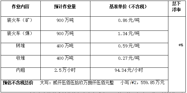 (二)表中的作業(yè)量均為合同期內(nèi)預(yù)估值,僅供投標(biāo)人參考,不作為結(jié)算依據(jù),最終結(jié)算以實際作業(yè)量為準(zhǔn)。投標(biāo)人應(yīng)對市場進(jìn)行考察預(yù)判,自行承擔(dān)風(fēng)險與收益。